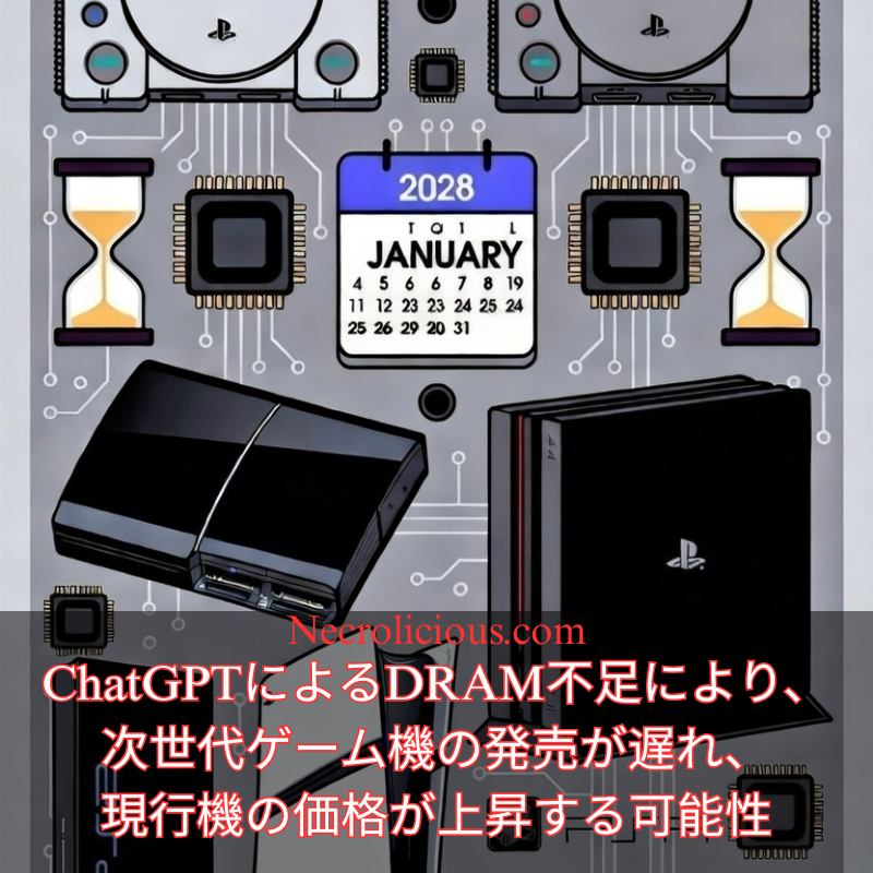 ChatGPTによるDRAM不足により、次世代ゲーム機の発売が遅れ、現行機の価格が上昇する可能性